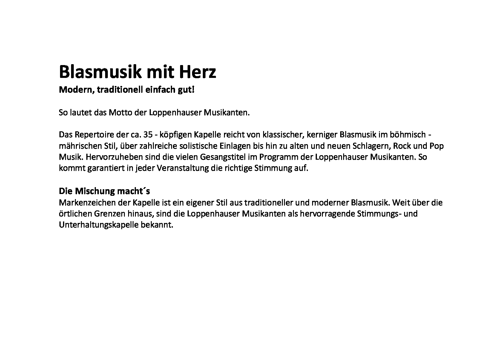 Pressetext der Loppenhauser Musikanten |